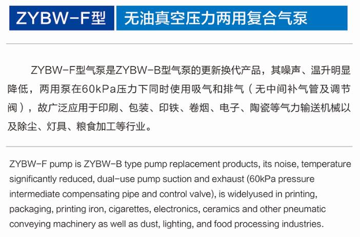 ZYBW140F-ZYBW160F型無油真空壓力兩用復合氣泵